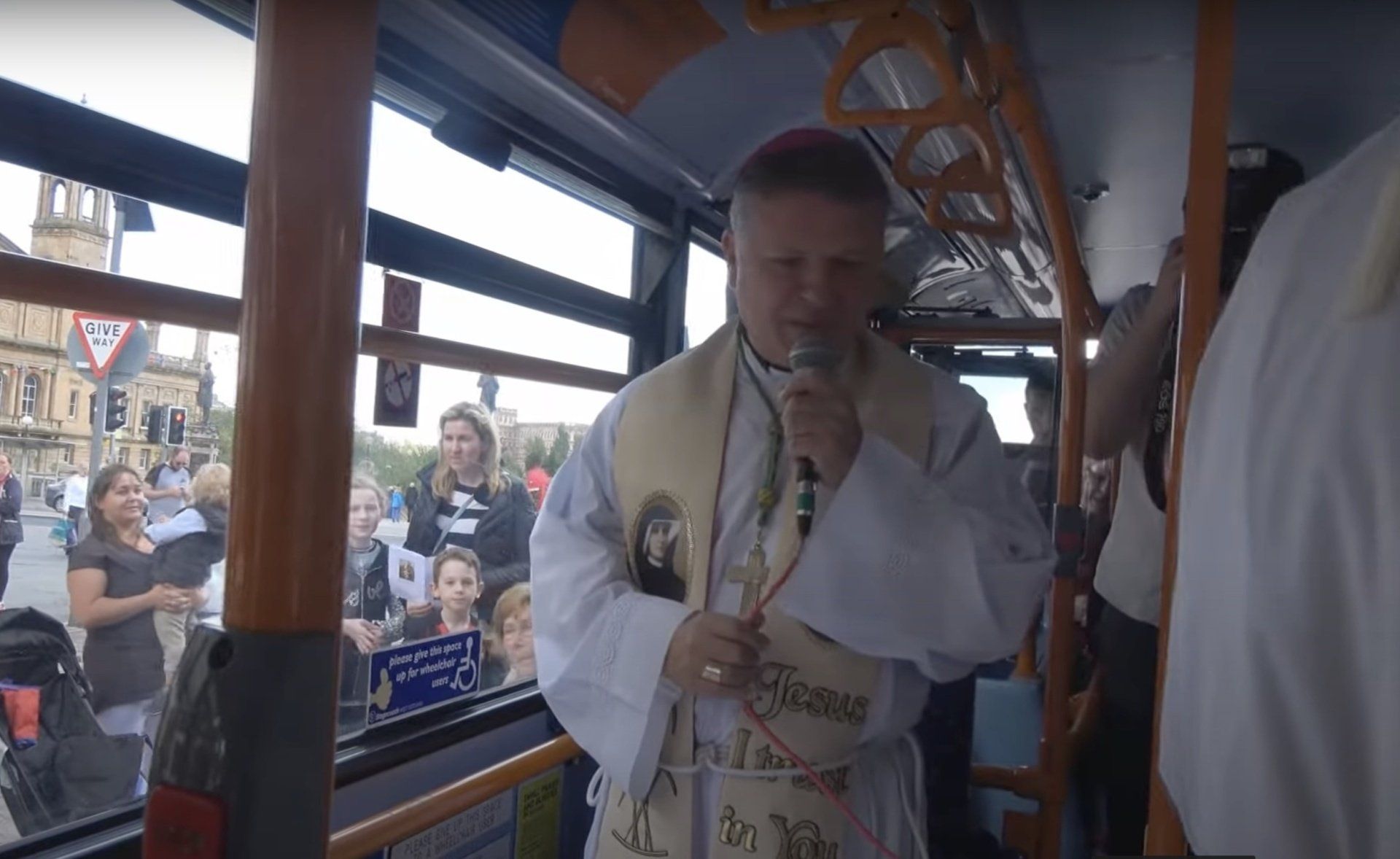 The Friends of Divine Mercy Scotland Team, introduced the 'Divine Mercy Bus' initiative in 2017 after being inspired by the words of Pope Francis: “Go out to the people and take the Church to them”. We decided to do just that, with a church on wheels! We bring the Catholic faith to the towns of Paisley, Coatbridge, Greenock, Barrhead and Glasgow. The double deck bus tickets are free for entry, opening our sliding doors to the people of God for Confession, for those who want to know more about the Catholic faith, or just simply for those who want to have a chat. We make sure that we are well stocked with prayer accessories, snacks , a joyful smile; and on occasions a hug for those who need one!